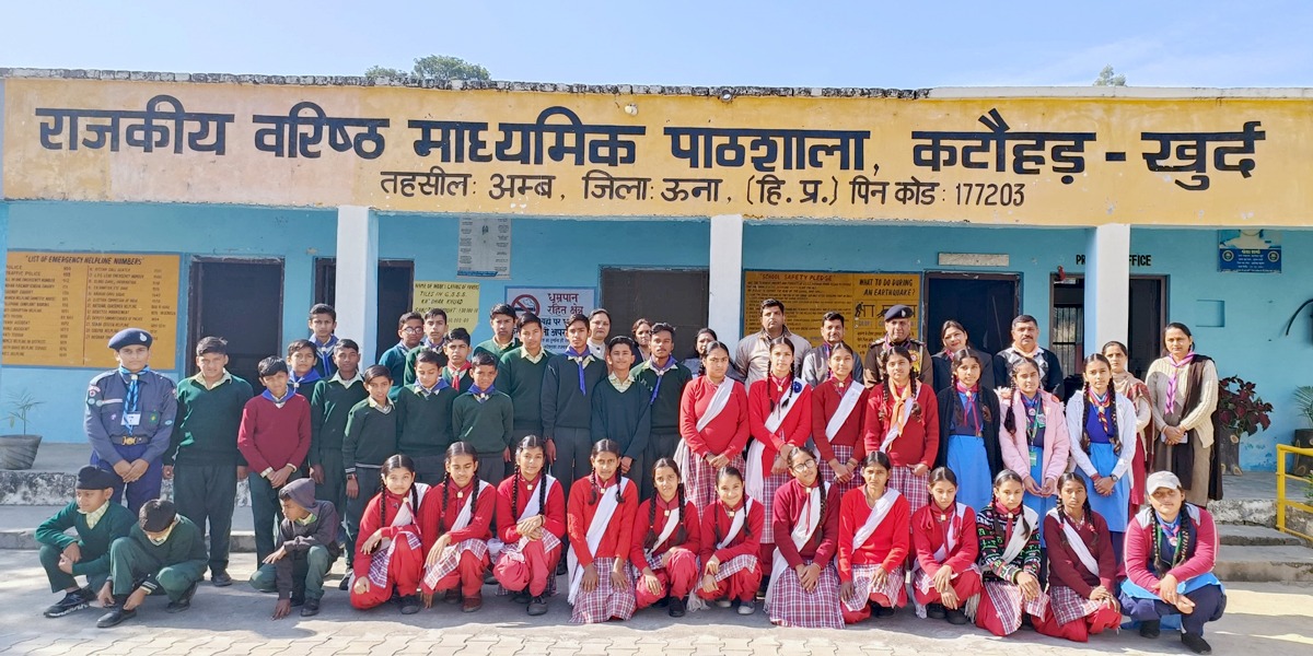 हुए कार्यक्रम में एसएचओ गौरव भारद्वाज को बैज लगास्कर एवम स्मृति चिन्ह देकर सम्मानित किया गया।अपने सम्बोधन में गौरव भारद्वाज ने स्काउट एवम गाइड्स को एमएमयू अर्थात नशा मुक्त ऊना अभियान पर विस्तार पूर्वक जानकारी दी।उन्होंने नशे के लत वाले व्यक्ति का परिवार व समाज के ऊपर पढ़ने वाले दुष्प्रभाव के बारे में बताया। उन्होंने कहा कि नशा किस प्रकार से व्यक्ति की सोच को प्रभावित करता है तथा उसके जीवन को किस तरह से तबाह कर देता है। विद्यालय के स्काउट और गाइड्स के द्वारा नशे से संबंधित प्रश्न पूछे गए, जिनका गौरव भारद्वाज ने संतोषजनक उत्तर दिए। गौर रहे कि प्रोजेक्ट "निश्चय" को हिमाचल प्रदेश सरकार द्वारा विभिन्न विद्यालयों में भारत स्काउट एंड गाइड्स के माध्यम से संचालित किया जा रहा है। सरकार की इस मुहिम के द्वारा समाज में फैल रहे नशे के जहर को रोकने के लिए बच्चों के द्वारा इस मुहिम को समाज के विभिन्न वर्गों में पहुंचाया जाएगा। इस अवसर पर राजकीय वरिष्ठ माध्यमिक पाठशाला कटौहड खुर्द की गाइड कैप्टन सोनू कुमारी ने एसएचओ गौरव भारद्वाज का धन्यवाद किया एवम बताया कि आगामी सप्ताह में विभिन्न गतिविधियों के माध्यम से आमजनमानस को नशे के कुप्रभावों के बारे अवगत करवाया जाएगा।इस अवसर पर विद्यालय के प्रधानाचार्य रमन भारद्वाज कुलविंदर कौर, सोनू कुमारी, सुनील कुमार,अविनाश कुमार, सीमा डोगरा, रविंदर कौर,मनजीत कौर, रंजना कुमारी, निशा, अलका शर्मा व जसवीर सिंह आदि उपस्थित रहे।